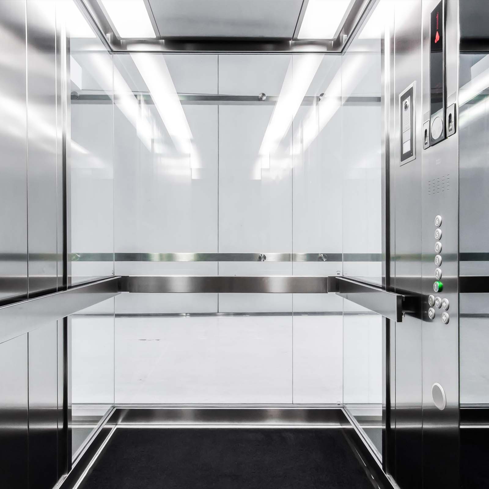 Zvyšujeme bezpečnost výměnou bezpečnostních komponent a provádíme kompletní rekonstrukce interiérů kabin. Pokud je výtahová šachta tvořena ocelovou (již nevyhovující) drátěnou konstrukcí, nahrazujeme opláštění novou výplní z bezpečnostního skla nebo opláštěním sádrovláknitými deskami či deskami s požární odolností.